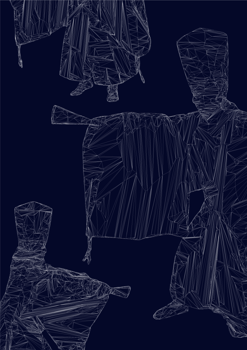 The performance is a collaboration artwork by the Kyogen performer, Mansai Nomura, and media artist, Daito Manabe. In order to express the collaboration between traditional arts and advanced technology, 3D scanning data of Mansai Nomura dancing to Noh music, "Sanjyou", was used as design material for the website and poster. Because the scan uses "4D View", capturing a moving object using 360 degree photography to convert to polygon data, designers can select any angle instantaneously throughout the performance and export it as vector data. On the web, performance by Mansai Nomura was published alongside with graphics designed by turning the 3D data polygons from a surface into lines. Even when displayed as inorganic scan data, the shape of Mr. Mansai is remarkable.The fusion of universal beauty, found within the traditional Japanese form, and technology was incorporated into the graphics as a new found Japanese beauty.
