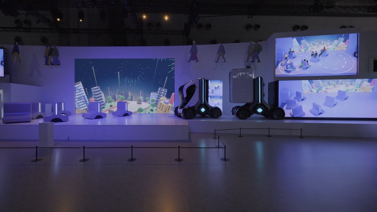 The show featured a compact mobility platform inspired by Isuzu’s concept vehicle VCCC, equipped with an in-house developed omnidirectional robot using omni-wheels. AR effects synchronized with the robot’s movements were projected onto monitors throughout the booth, dynamically expressing the Isuzu Group’s vision of the future of transportation.