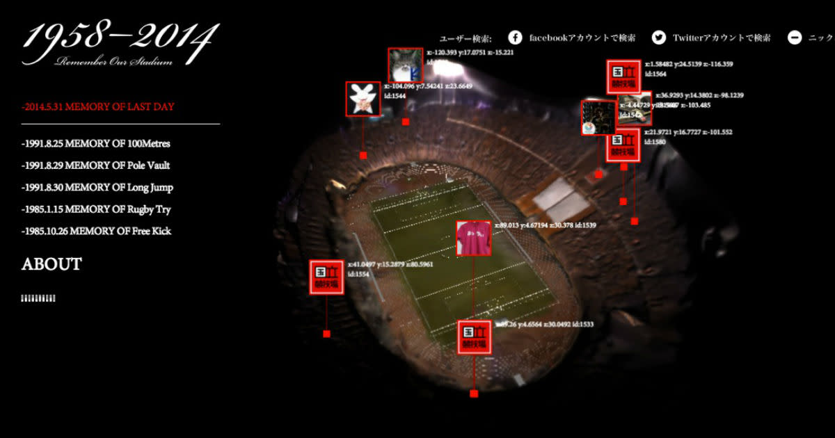 Rhizomatiks Design provided art direction and programming for the “Remember Our Stadium” project, which photographed patrons to the National Olympic Stadium on its last night of operation, thus preserving the stadium for posterity in the form of a sculptural 3D object.