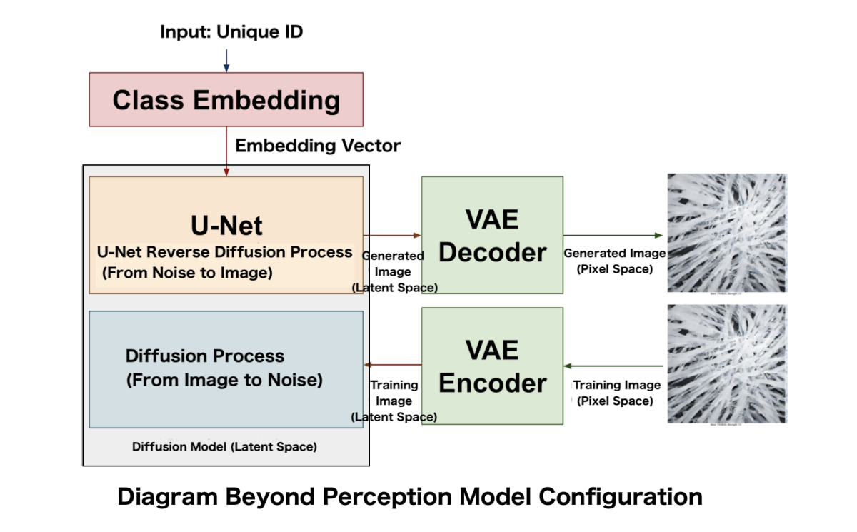 As a result of this approach, the Beyond Perception Model developed in this study was not trained as a model that generates images from text prompts, but as a “class-conditioned” model that generates images by combining unique IDs assigned to each video and their weight. Consequently, this model does not utilize text encoders such as CLIP Text Encoder.