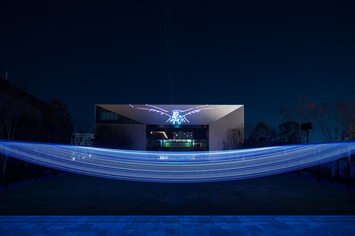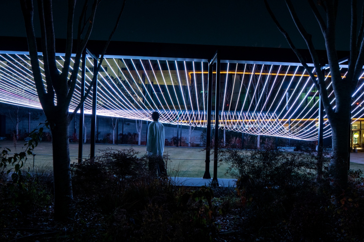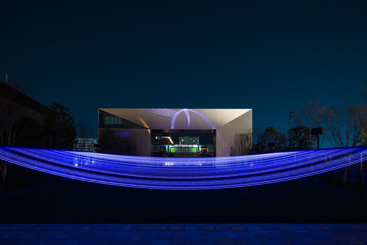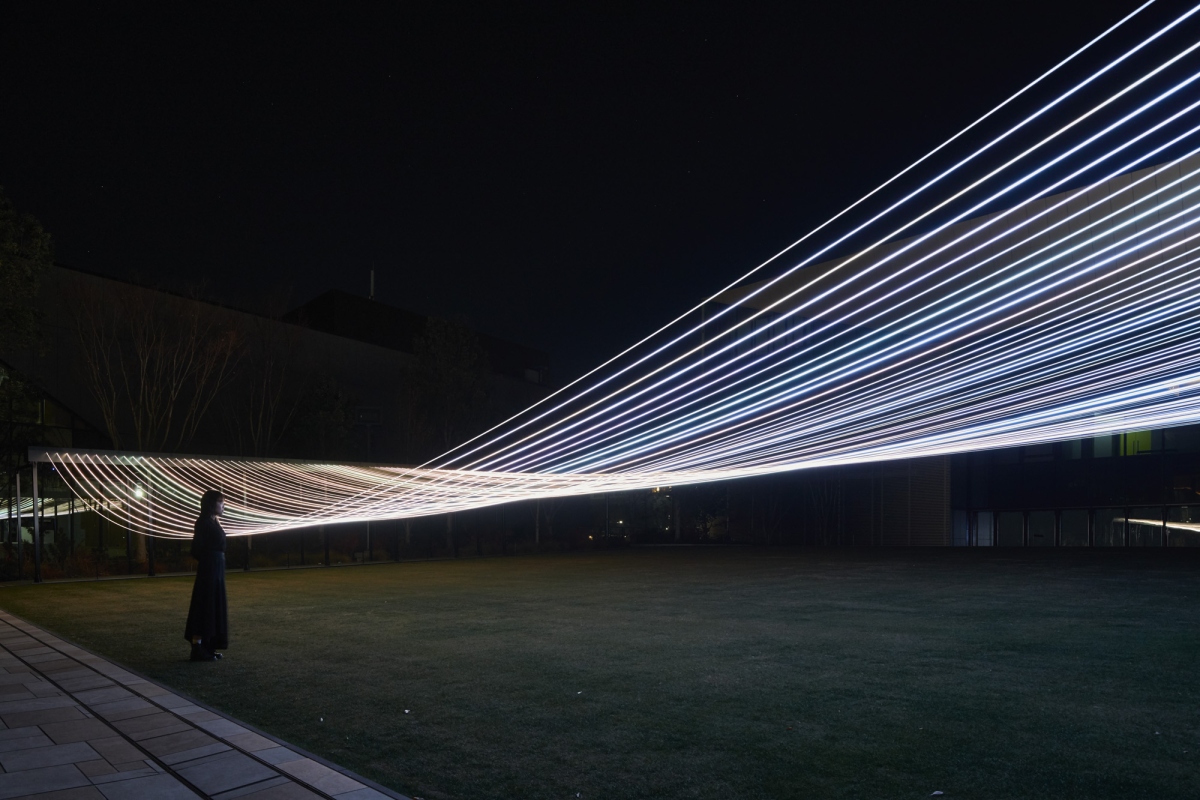 レーザーファイバー x レーザーマッピングが織りなす 眩い光のインスタレーションです。