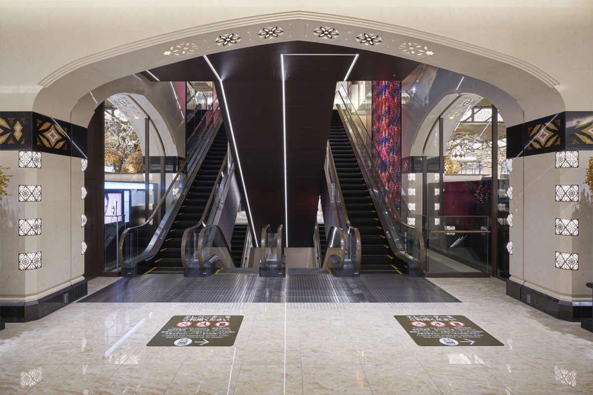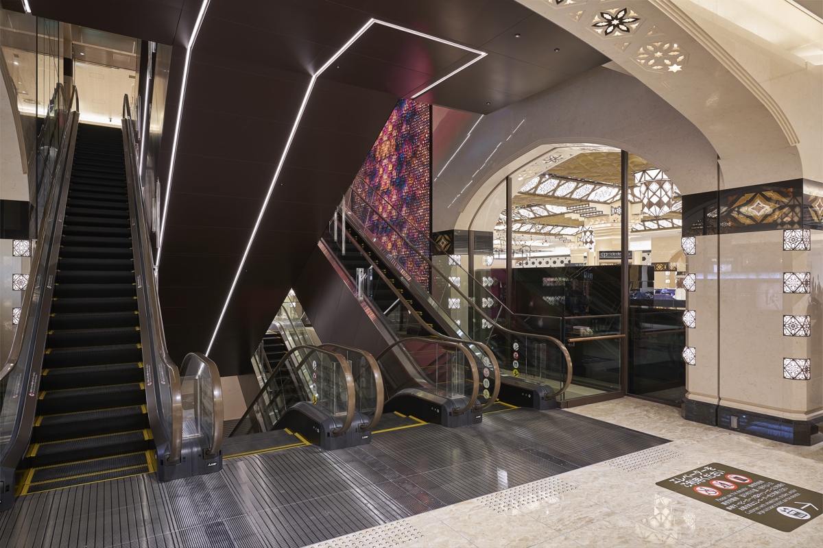 伝統を継承した普遍的な物の強さと、現代技術を用いた可変的な光の儚さ。この対照的な概念の融合によって生まれた本作品は「継承・創造・発信」という新生大丸のコンセプトを体現している。これまで移動するためにあったエスカレーター空間を、お客様をもてなす体験空間へと変容させ、新生大丸でしか表現し得ない独自の空間を生み出した。