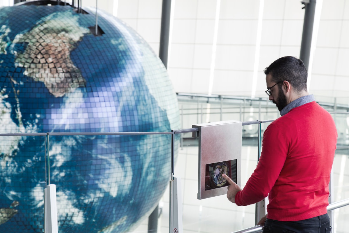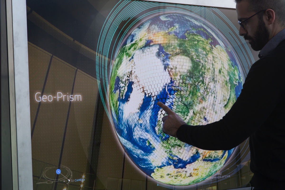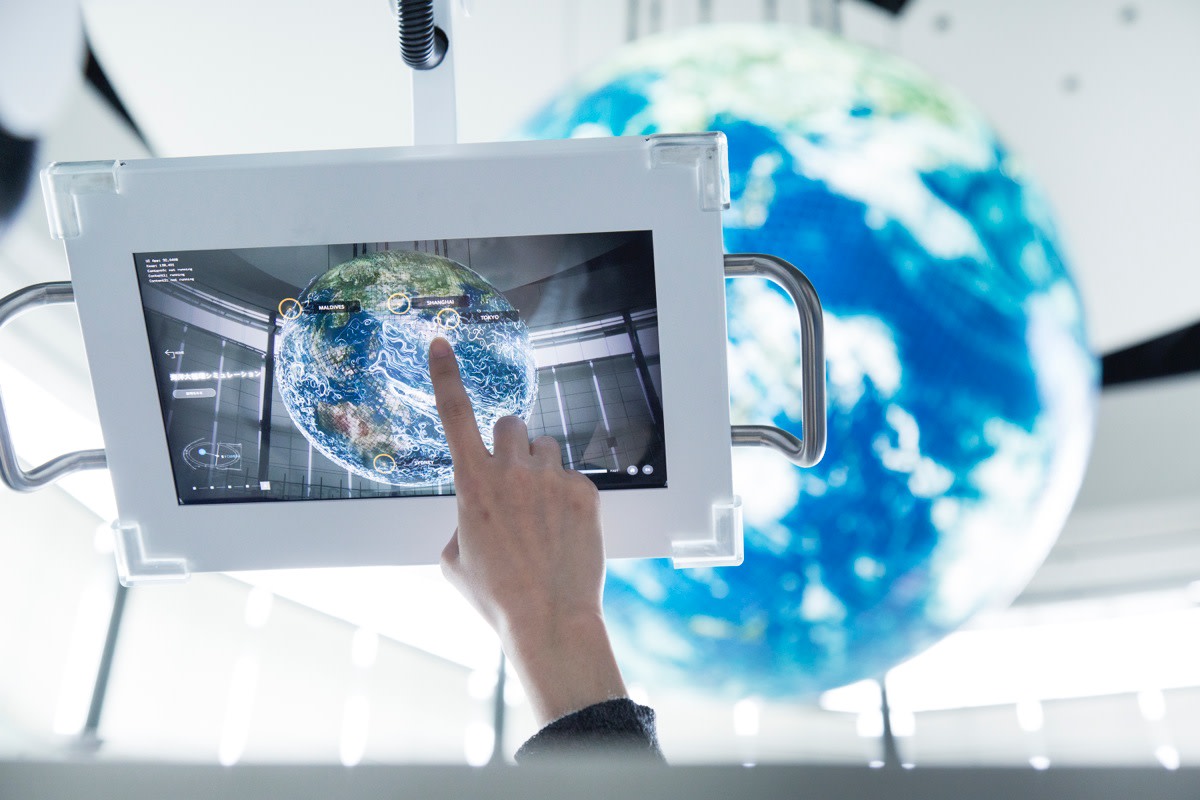 AR技術を用いて、ジオ・コスモスにデータやシミュレーションを重ねて表示できるシステムを開発。CGと複数のカメラからの映像をダイナミックに織りまぜたデータが、地球上に可視化される。タッチスクリーン端末を使って、360度方向からコンテンツを鑑賞することができる。また多くの研究者やクリエイターが独自にコンテンツ開発に参加できる設計となっている。