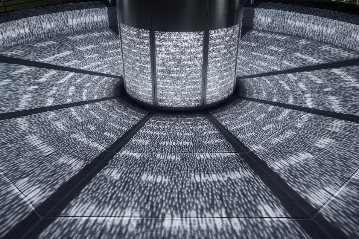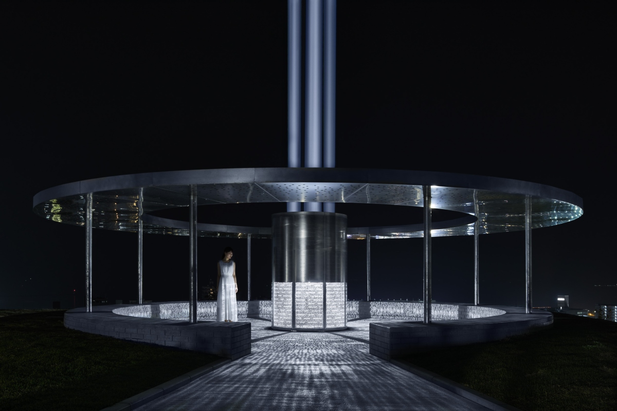 1970年に開設された“平和を願う公園”であり、東京湾 / 猿島なども見渡せる、眺望の良い場所として地域内外から愛されている本公園は、歴史を調査した結果、戦争時に使われていた米ヶ濱砲台跡に造られたものであることがわかりました。リニューアルのテーマを「平和の軸」とし、古くから「無限、永遠」を意味する「円」を多用。横須賀市民の方々が描いていただいた「円」も天井や円柱に刻まれ、多くの人の平和に対する思いを込めたモニュメントが完成しました。